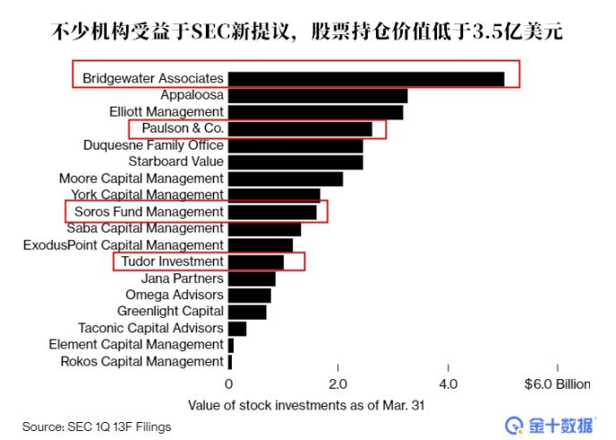 正如开头指出,若改革通过,索罗斯、保罗·辛格等金融大鳄将无需披露其仓位情况。尽管这些传奇交易员全都管理着数十亿美元的资产,但他们在美国交易所交易的每家公司股票的价值均低于35亿美元的门槛。