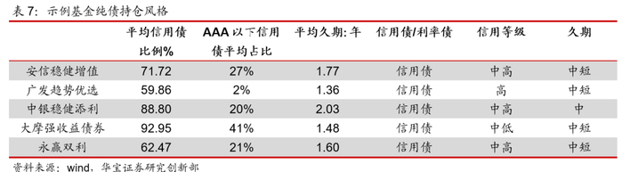 1)利率债/信用债为主:根据基金长期的利率债和信用债的持仓比例,判断基金在纯债部分是更偏利率债,还是更偏信用债策略。