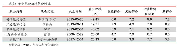 通过业绩得分,一方面我们能够快速剔除业绩表现过差的基金,另一方面,对于业绩得分较高的基金,可以通过收益、风险、业绩持续性指标得分的高低,看出基金的业绩表现特点,再结合后续维度进行进一步分析。