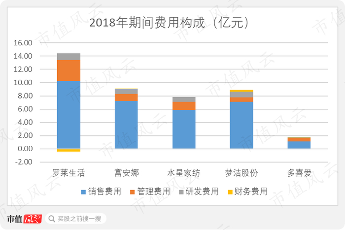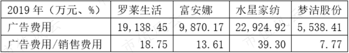 而提升知名度的最快途径,便是广告。实际数据也证明了这一点,2018年,水星家纺的广告费用占到销售费用的39.30%,罗莱生活的广告费用也占到销售费用的18.75%。