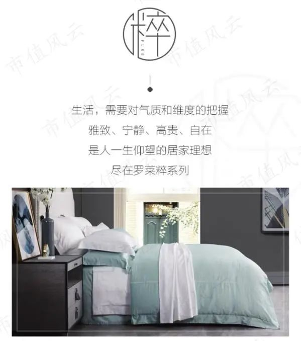 2018年,罗莱生活推出“粹”系列产品系列,定位年轻“都市新中产”消费群体,以纯色系高档面料为主,主打简约纯粹的超柔床品,大都为套件系列,价格一般在5,000-7,000元不等。