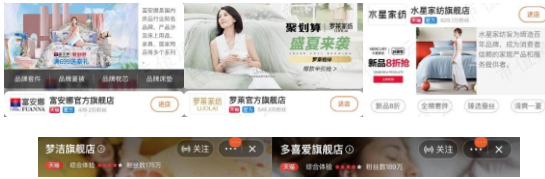 罗莱生活、水星家纺、富安娜三家店铺的粉丝数量均超过400万,明显与梦洁、多喜爱两家店铺不到200万的粉丝数量,不在一个数量级。