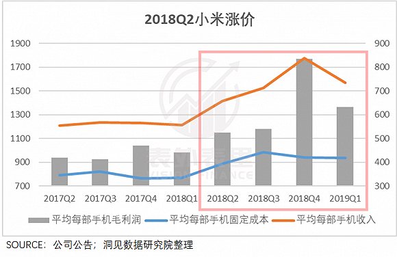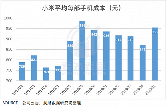 根据财报,小米平均每部手机的生产成本从2017Q2的789元一路上涨到了2018Q3的986元最高点。