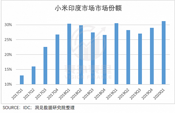最后需要提到的是小米的印度市场。小米于2014年进入印度市场后,在印度实行硬件制造本地化,凭借较低的价格和较优质的售后服务,迅速拿下了印度市场。到如今,小米在印度的市场份额长期处于领先地位——走在印度街头,每10个智能手机用户,就有3个人用的是小米。