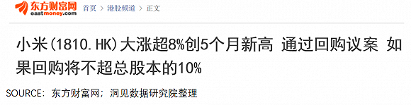 而小米自身也在6.23日的股东大会上通过了关于回购不超过10%股票的提案。提案的通过表明了小米对于公司后续营收以及盈利的看好。资本市场也立马给出了回应:在6.24日,小米股票久违的出现了一根大阳线,当天涨幅超过9%。
