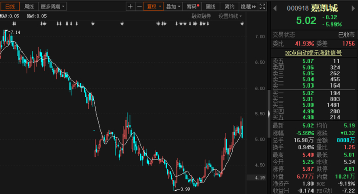 嘉凯城原本是杭州国资背景的上市公司,2016年4月,嘉凯城发布公告,控股股东浙商集团已确定此次股权转让的受让方为恒大地产集团,受让价格为3.79元/股。在此次股权转让中,恒大地产集团受让总股份为9.52亿股,占总股本52.78%,交易金额合计约36.1亿。许家印成为嘉凯城实控人。