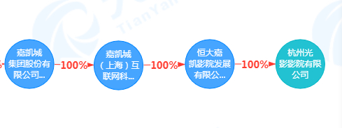 股权结构显示,杭州光影影院有限公司由恒大嘉凯影院发展有限公司100%持股,后者是“恒大系”上市公司嘉凯城(000918)全资子公司。