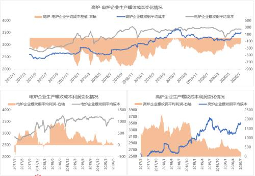 图8、高炉、电炉企业螺纹钢生产成本情况