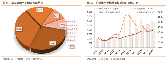 1)公司具备较为丰富的土地储备资源,且土地储备的质量较为优异;截止2019年末公司土地储备6814万方,对应货值9300亿元,足以满足公司滚动开发3.84年;且土储集中于核心一二线城市,区位优势显著。