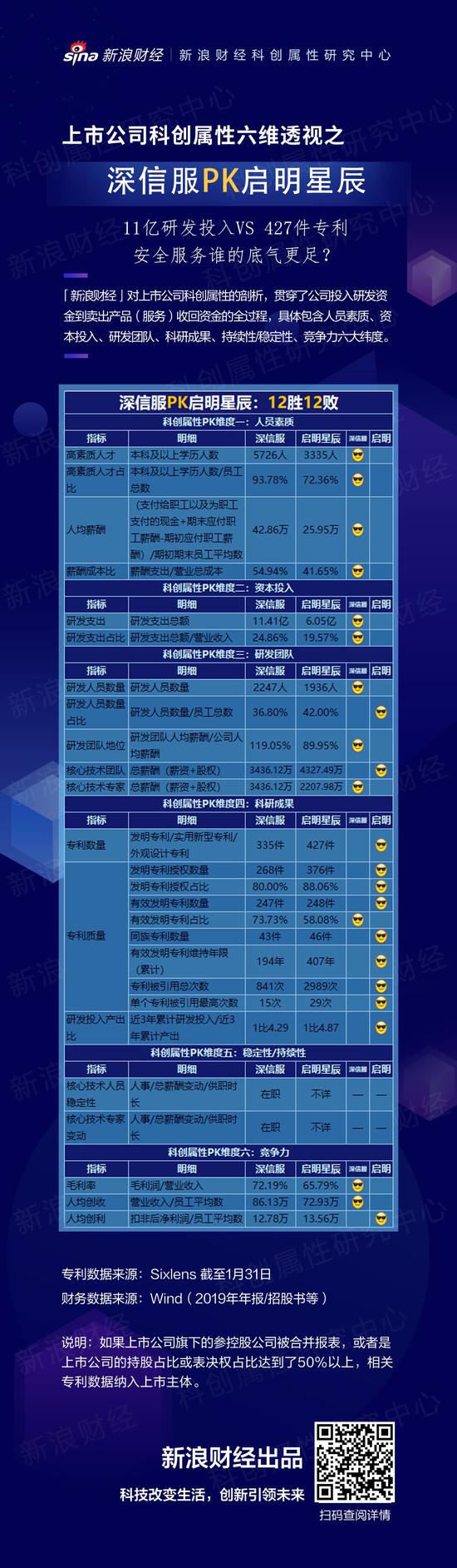 六维透视后,「新浪财经科创属性研究中心」的数据显示,在深信服和启明星辰的科创属性PK中,深信服取得了12胜12败的成绩,汇总如下: