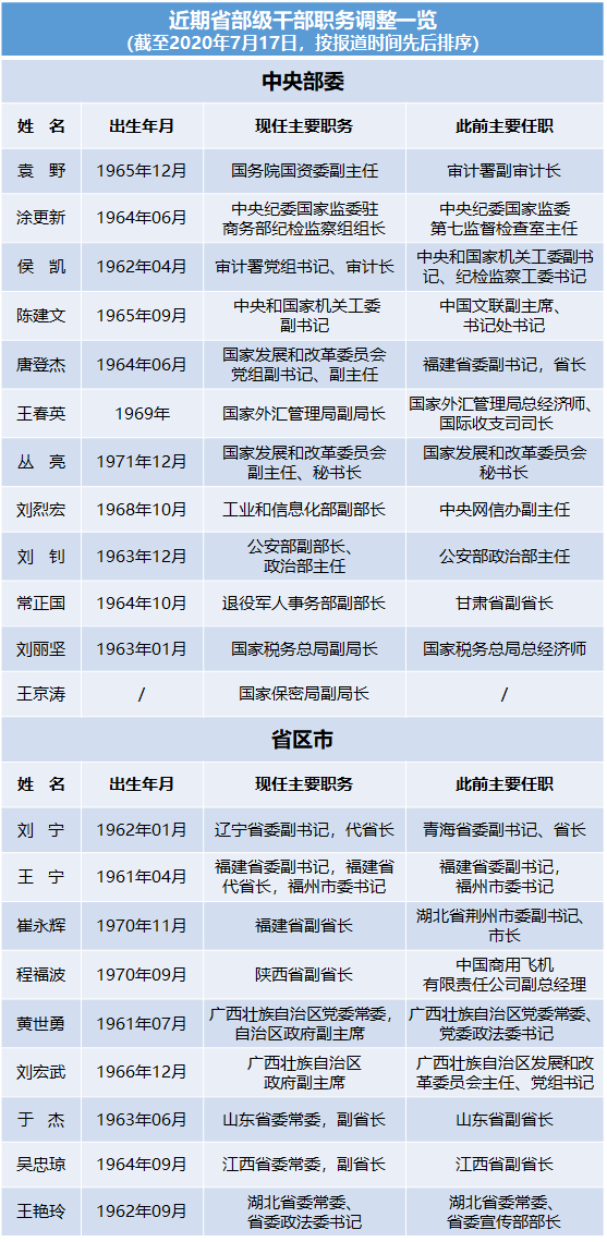 原标题:近期至少20名省部级干部职务调整 4人履新正部级
