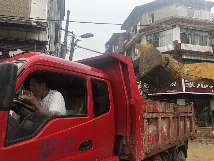 “二街”所属的六角亭街道办事处一名工作人员告诉记者,他早上7点就驾驶卡车参与清淤工作,截至下午2点半,他已经跑了三趟:“主要是垃圾回收站那里要排队,清淤的车太多了。”