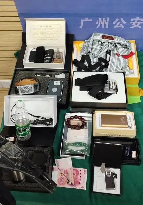 今年5月29日,网警支队会同法制、刑警支队以及越秀、海珠、白云、番禺区公安分局,在广州以及湖南省长沙市、浙江省杭州市等地展开收网行动,共抓获涉案嫌疑人74名,依法刑事拘留54名,缴获针孔摄像头、无线微型耳机以及整合了针孔摄像头的火机、皮带、手表、家用吸顶灯、衣服、麻将诈赌机等违法设备1万多套。