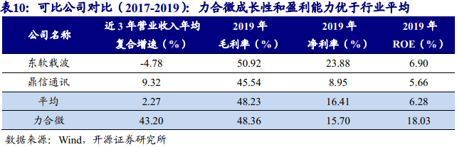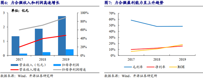 公司2017、2018、2019年营业收入分别为1.3、1.9、2.8亿元,CAGR为43.2%,对应归母净利润分别为0.1、0.2、0.4亿元,CAGR为79.8%。公司收入快速增长的主要原因系基于自主芯片的模块与整机销售收入增长。2017至2019年,公司毛利率分别为58.5%、48.2%、48.4%,净利率分别为10.0%、12.2%、15.7%,ROE分别为6.7%、10.8%、18.0%。随着规模增长,公司盈利能力明显提升。