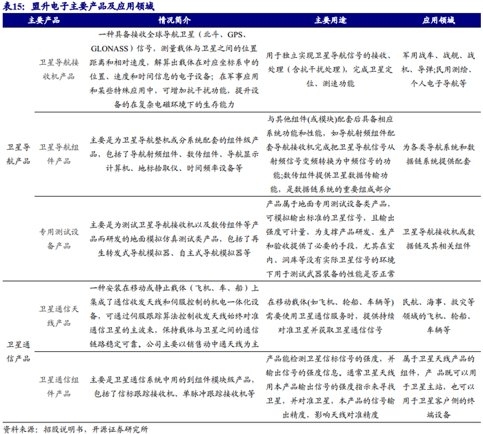 卫星导航行业:公司卫星导航产品主要为基于北斗卫星导航系统的导航终端设备以及核心部件产品,如卫星导航接收机、组件、专用测试设备等。下游市场是包括兵器、船舶、航空、核工业、航天、军工电子信息等相关产业在内的军工产业,是先进制造业的重要组成部分,国防信息化建设的基石,其产业链涉及精确制导、模拟仿真、激光、雷达、通信、导航、信息安全等多个领域,除了作为独立装备提供给军方外,其装载平台可覆盖陆、海、空、天各种主战武器,形成复杂的武器集成系统。