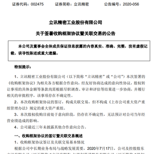 科技龙头股立讯精密传来劲爆消息!