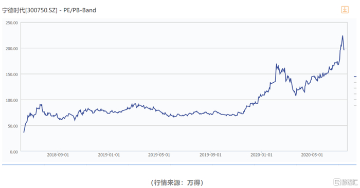 虽然通过定增收获超2成的账面收益,但不可否认目前宁德时代的估值实际账面看是明显溢价还是太高。