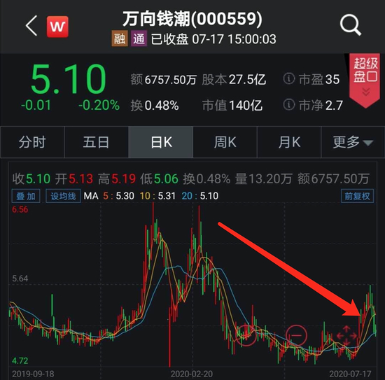 进入2020年,万向钱潮并没有像大多数的股票一样迎来反弹,反而股价不断下跌。截至目前,万向钱潮仅剩下140亿市值。