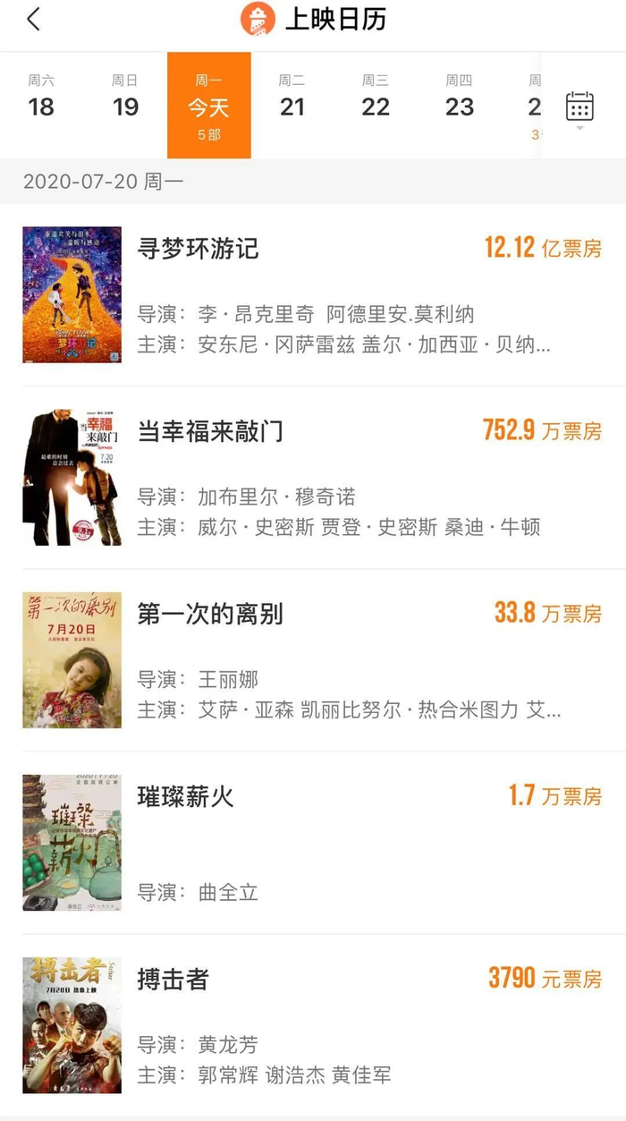 记者获得的最新片单表显示,7月20日,将有20部影片可供上映,其中包括: