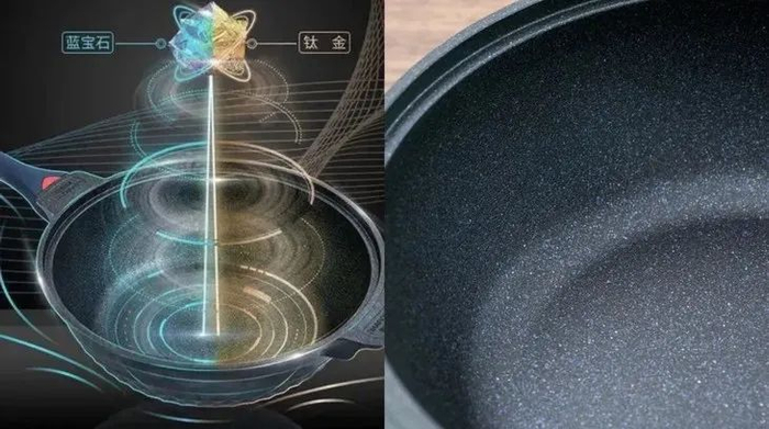 凭肉眼也能清晰看到:钛钻锅表面的宝石蓝色颗粒和钛色颗粒,用宝石做的锅煮饭,听起来就很奢华~
