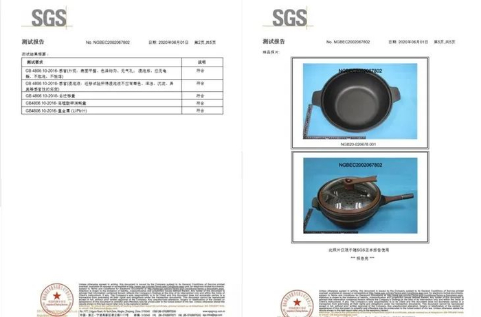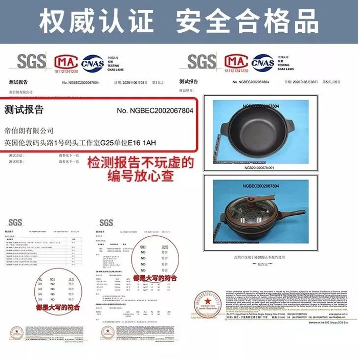 SGS检测报告中明确标明:帝伯朗宝石钛钻锅符合各项健康标准,没有有毒重金属。