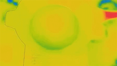 我们用热感仪拍摄,可以看出帝伯朗宝石钛钻锅受热后非常均匀。