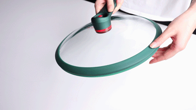 帝伯朗宝石钛钻锅的锅盖,设计有微压阀门,盖好锅盖后锅内被完全密封,把锅拎起来都没问题。