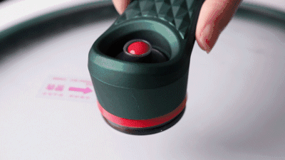 揭盖时,把红色气阀向上抬起就能轻松打开了。