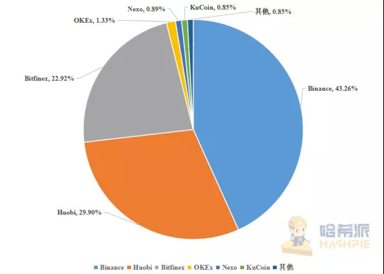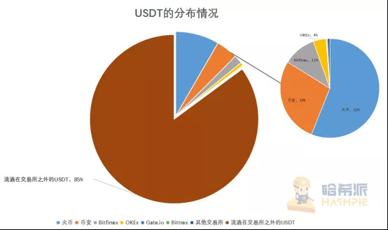 3月13日到3月22日期间,流入各交易所的USDT在该时间段增发量的占比情况