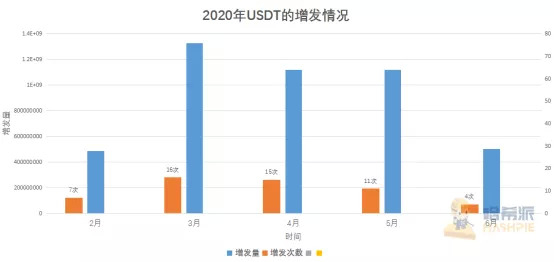2020年USDT的增发情况(数据源自:Whalealert)
