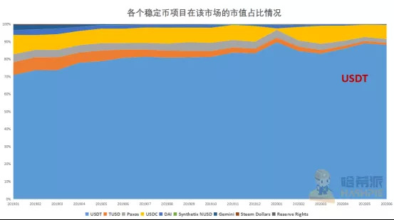 各个稳定币项目在该市场的市值占比情况(数据源自:Stablecoin Index)