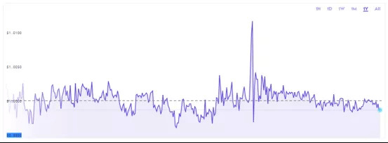 2020年以来,USDT的价格走势(数据源自:Kraken)