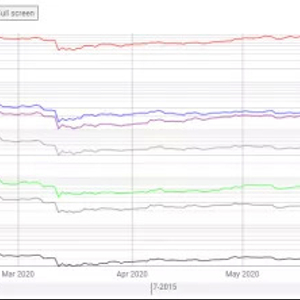 不仅如此,2020年上半年稳定币项目的代币流通速度数据显示,在该市场上市值占比超88%的USDT流通速度最低,仅为17.35,还不及DeFi项目MarkerDAO的五分之一。这意味着USDT的链上使用率不高,大部分被用于一次性交易或者活跃于交易所内。但结合其每月不断增大的场内交易量跌幅来看,近几个月以来USDT二级市场的交易热度未见起色。上半年以USDT为首的稳定币项目猛增三倍的交易量,很有可能是该类币种在场外市场或者是其他领域被大量使用的结果。