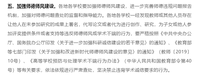 针对“学二代”现象,第五条给出了说明,重点是对于这些给子女、他人提供帮助参加评奖的的行为,无论是教师还是父母,或是其他人,一经发现,依据法规严肃处理。