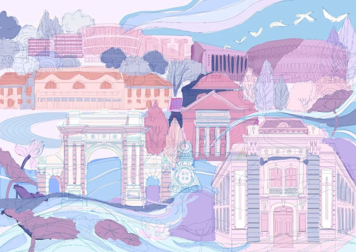 今年春日,校研究生会克服疫情的阻隔,对新版录取通知书初步设计方案进行了意见征集,并归纳总结反馈给设计团队。受访同学对初稿的封面版式、内页设计、绘画风格、开合方式等方方面面提出了建议,甚至细化至是否便于小屏幕晒图。