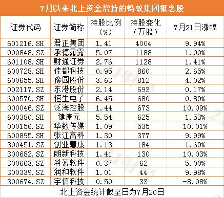 除了蚂蚁集团概念股,北上资金还增持了这些股: