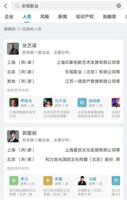 张艺谋等众多娱乐界人士都是乐视影业股东。数据来自企查查