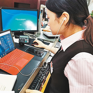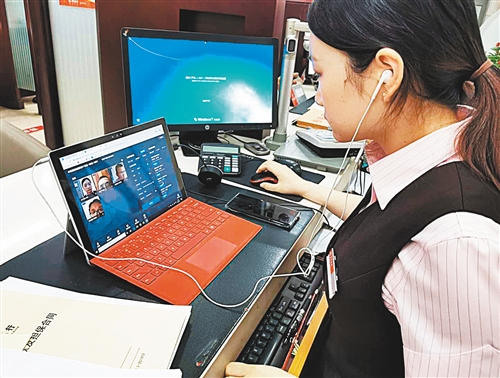 图为招商银行杭州分行客户经理正在使用线上核签室核实客户身份信息。