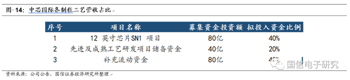 公司科创板上市计划募资200亿,补充流动性和研发投入,加码先进制程。随着公司先进制程的追赶,在设备上及研发上均需要大量资金,公司科创板上市能较好解决公司未来的融资能力。实际募集资金扣除发行费用后的净额为200亿元,计划投入12英寸芯片SN1项目(80亿元)、先进及成熟工艺研发项目储备资金(40亿元)以及补充流动资金(80亿元),公司目标建成月产3.5万片先进制程的生产线。