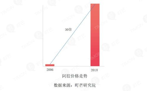 在众多补血产品中,阿胶补血的概念已深入人心,随着我国消费者对阿胶需求量的大幅增加及国内外毛驴产量的下降,阿胶价格不断攀升,町芒研究院数据显示,2018年我国阿胶的价格是2006年阿胶价格的30倍。随着阿胶价格的不断走高,企业为了降低成本同时满足消费者对阿胶的需求,阿胶糕等阿胶代替品应运而生。