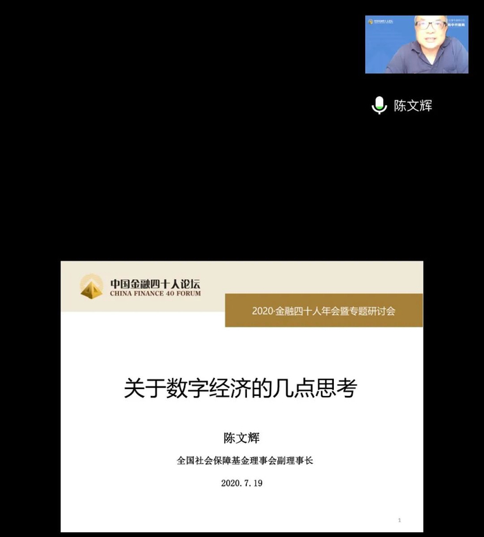 疫情冲击之下,数字经济逆势发展,展现出强大的韧性与活力。CF40学术顾问、全国社会保障基金理事会副理事长陈文辉分享了他对数字经济的几点思考。