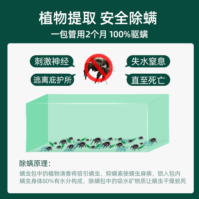 使螨虫进入“睡着”状态,防止螨虫交配与繁殖,断绝螨虫繁衍子孙后代!