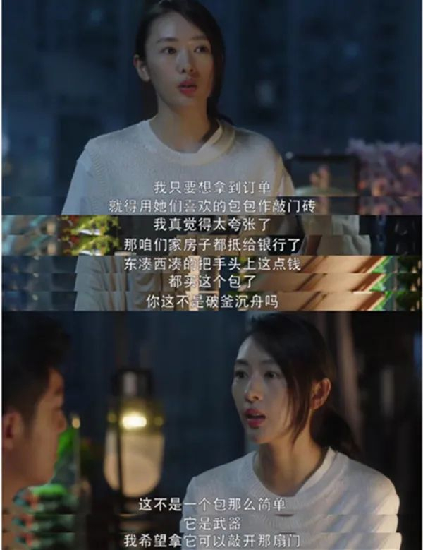 顾佳(童瑶 饰)把包当作敲门砖。