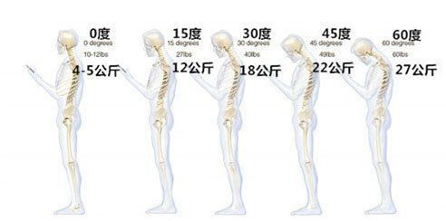 脑袋每低一点,颈椎承受的压力就越大。