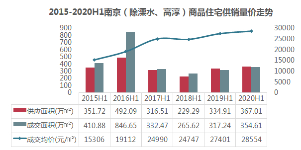 2020H1南京全市经营性用地成交78幅、353.42万方,居近6年新高;