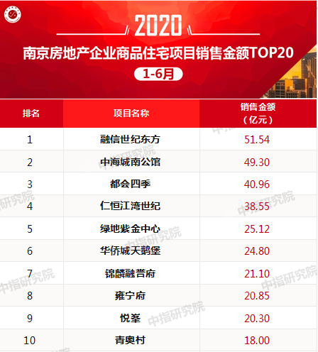 项目榜单中,位于仙林湖的融信世纪东方、城南两桥板块的中海城南公馆和江宁科学园的都会四季销售成绩亮眼,每次开盘基本售罄,成绩亮眼,均已收官。
