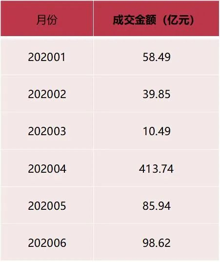 2020H1成交金额707.13亿元,低于2016H1的734.82亿元,为近6年第二高,较去年H1成交金额504.19亿元上涨40.25%;