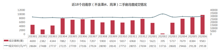 2020H1南京二手房成交量逐月上涨,超过去年同期;