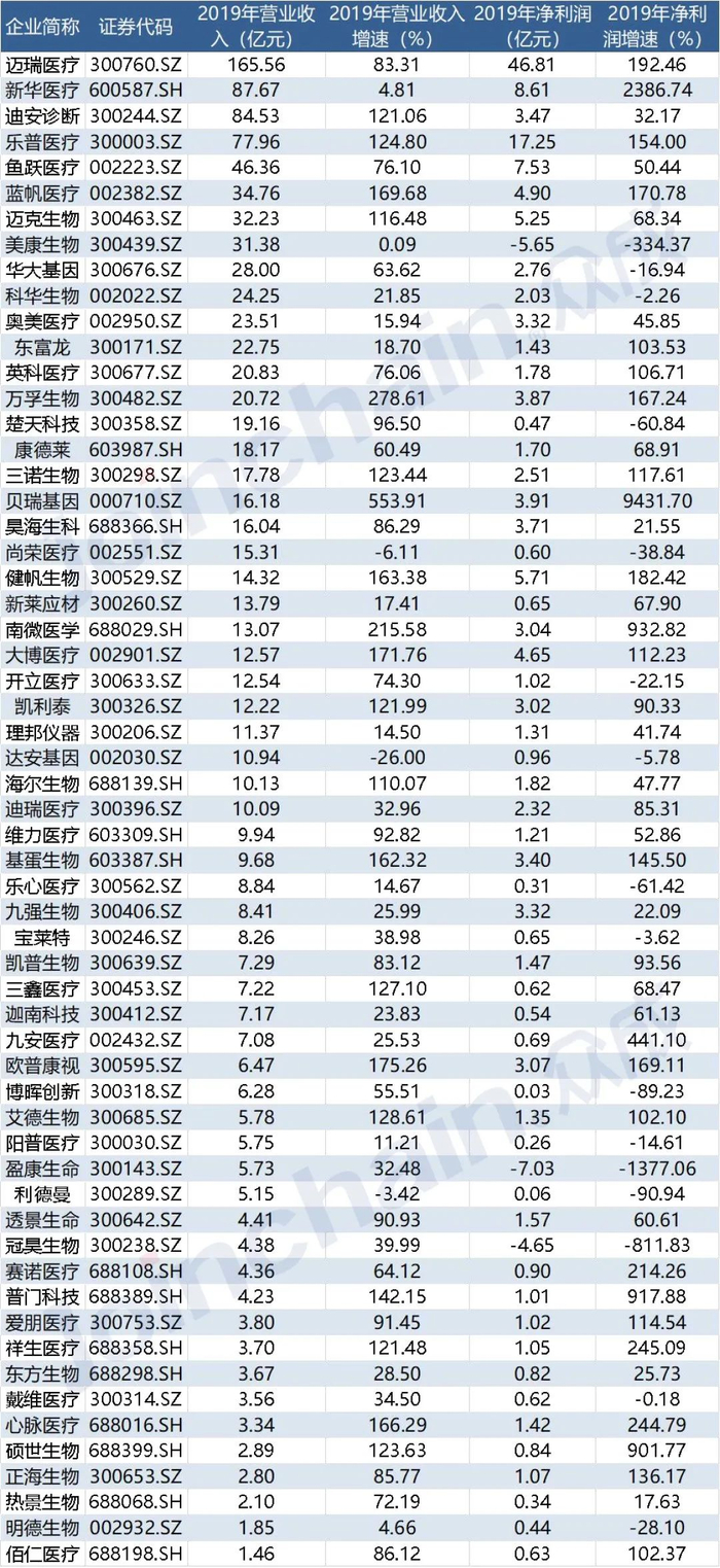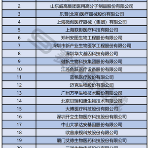 深圳市新产业生物医学工程股份有限公司首次出现在榜单,排第7名;