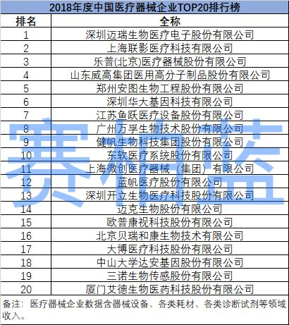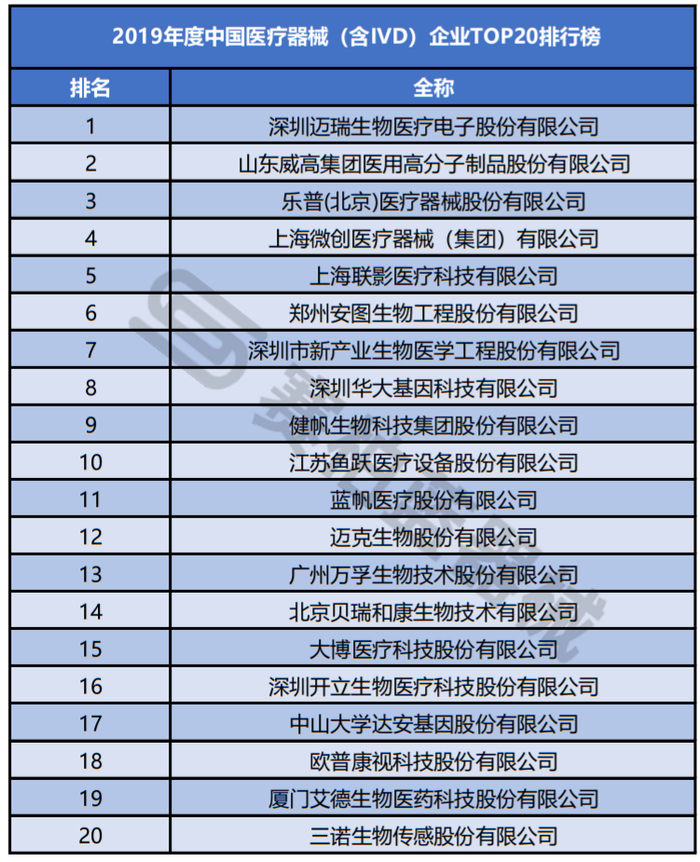 刚刚!中国医械企业20强排名公布!IVD企业占据半壁江山!